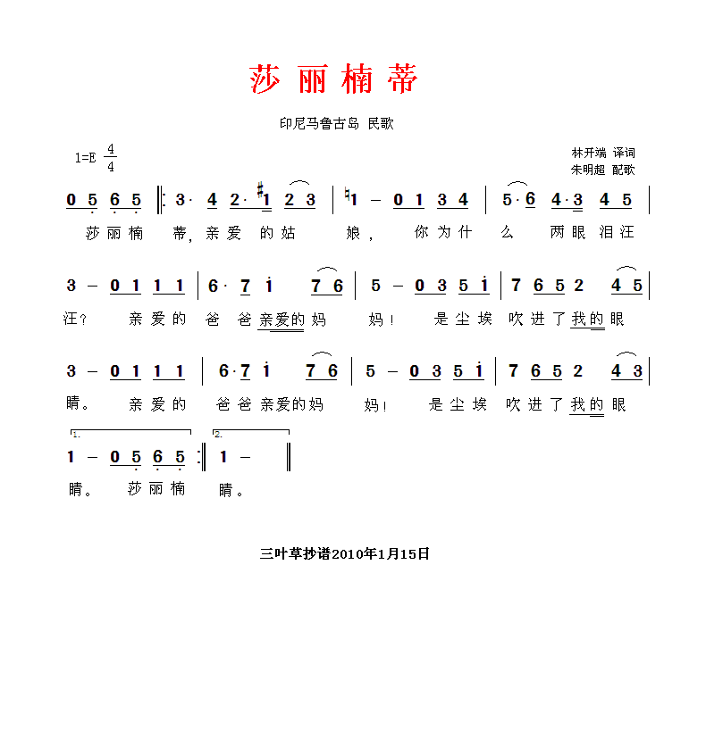 莎丽楠蒂 简谱 曲谱