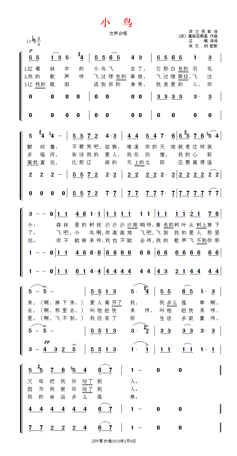 小鸟 简谱 曲谱