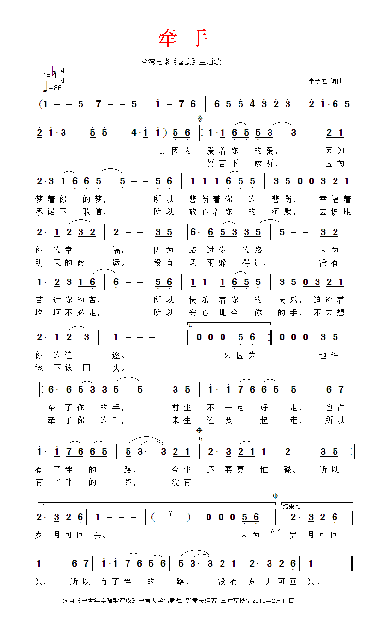 牵手 简谱 曲谱