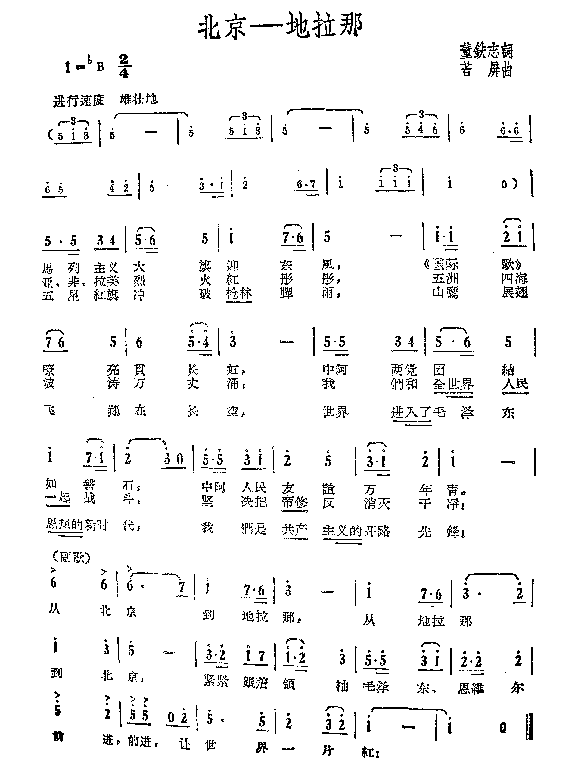 北京—地拉那 简谱 曲谱
