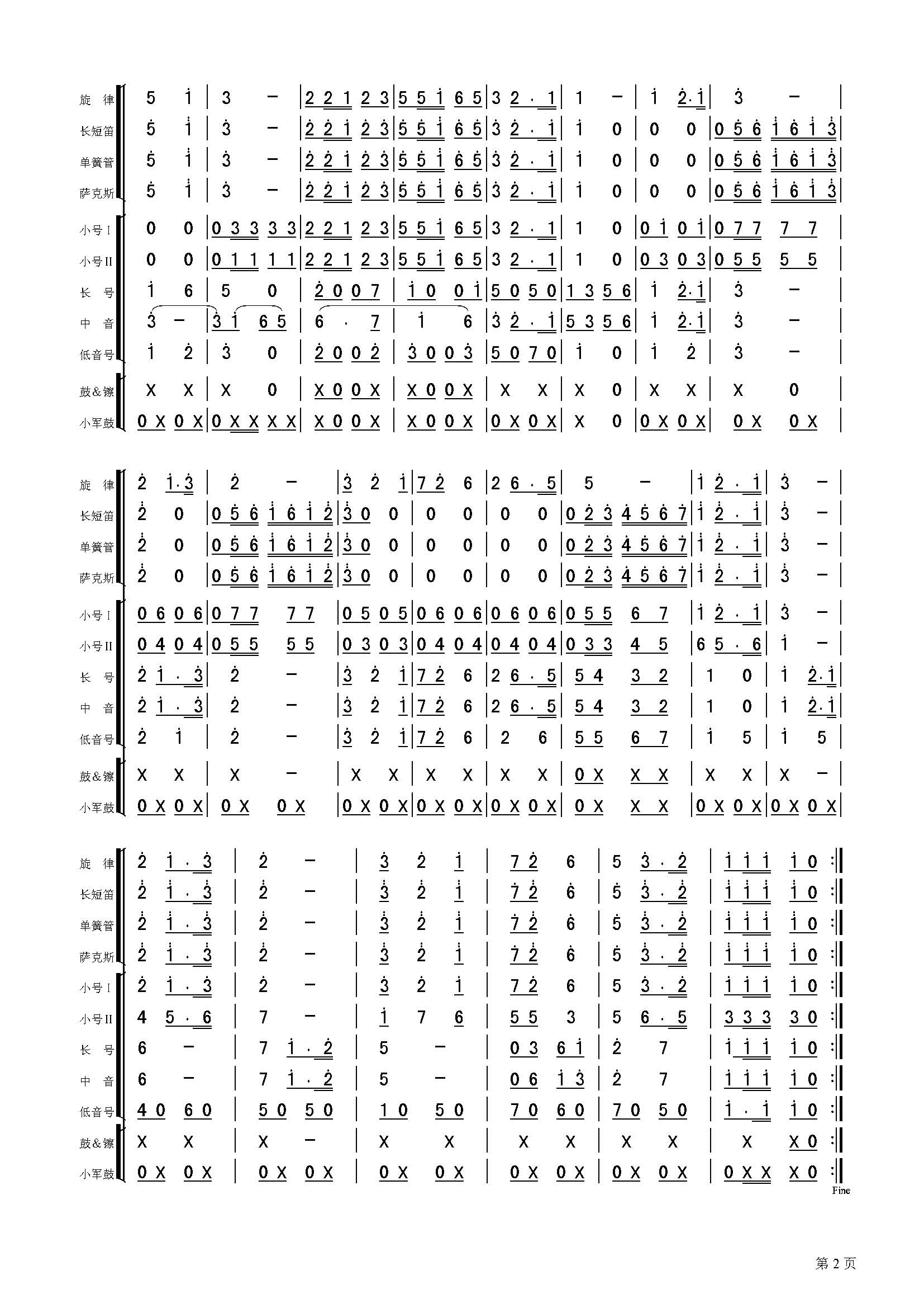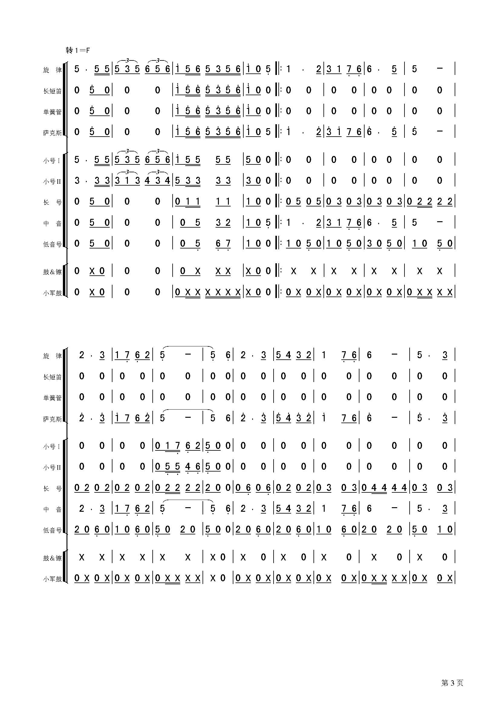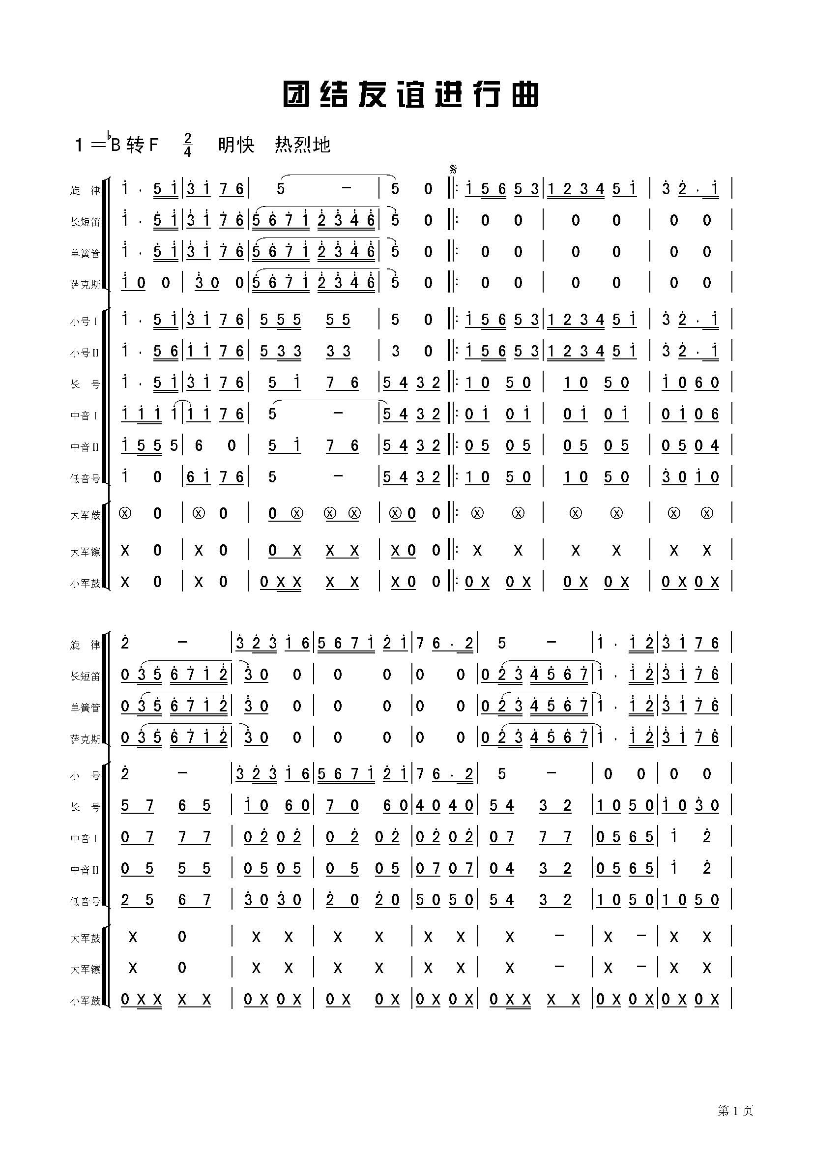 团结友谊进行曲(总谱)简谱 曲谱