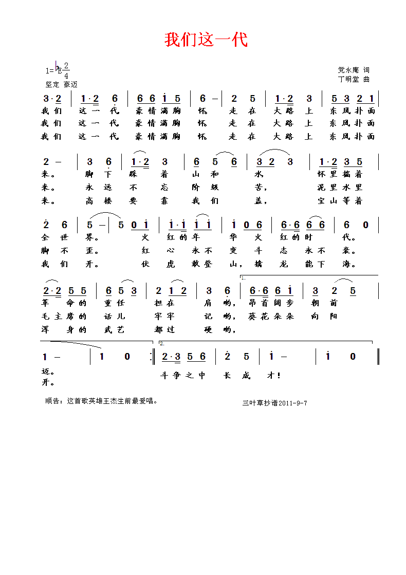 我们这一代 简谱 曲谱