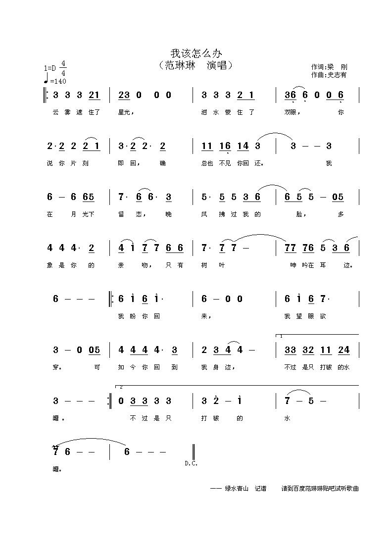 我该怎么办 简谱 曲谱