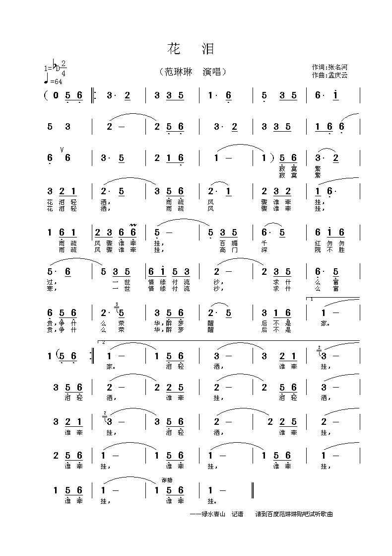 花泪 简谱 曲谱