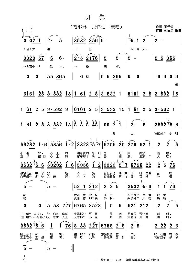 赶集 简谱 曲谱