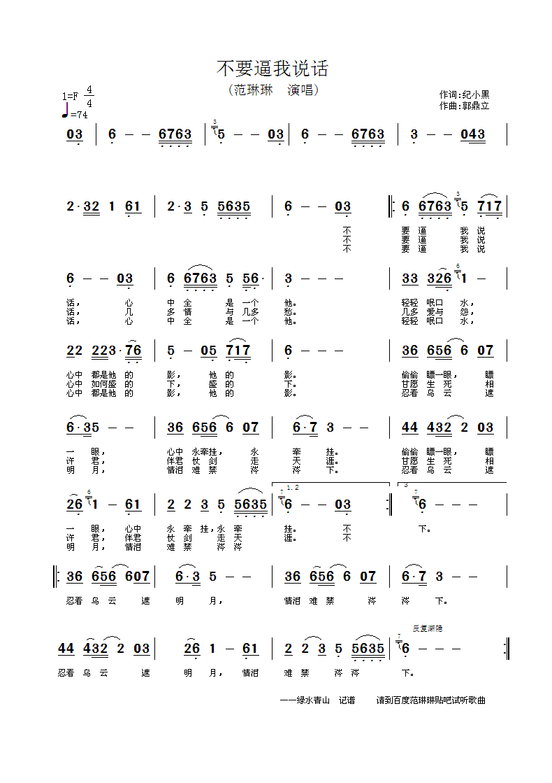 不要逼我说话 简谱 曲谱