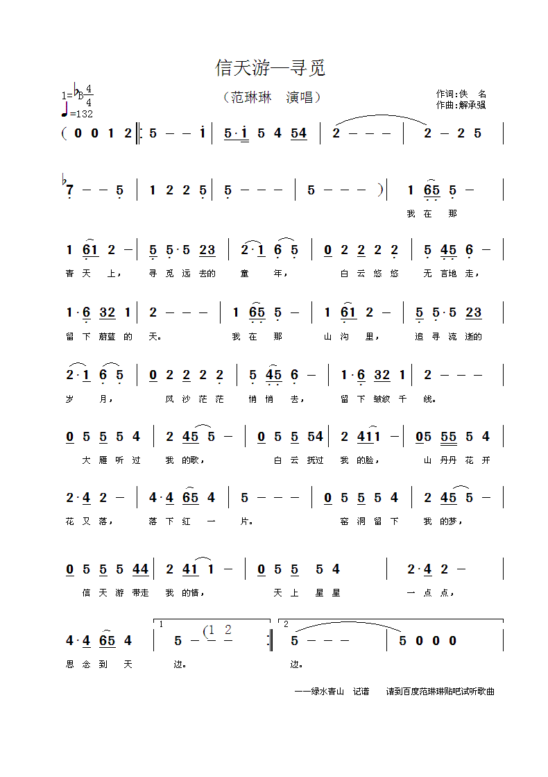 信天游—寻觅 简谱 曲谱