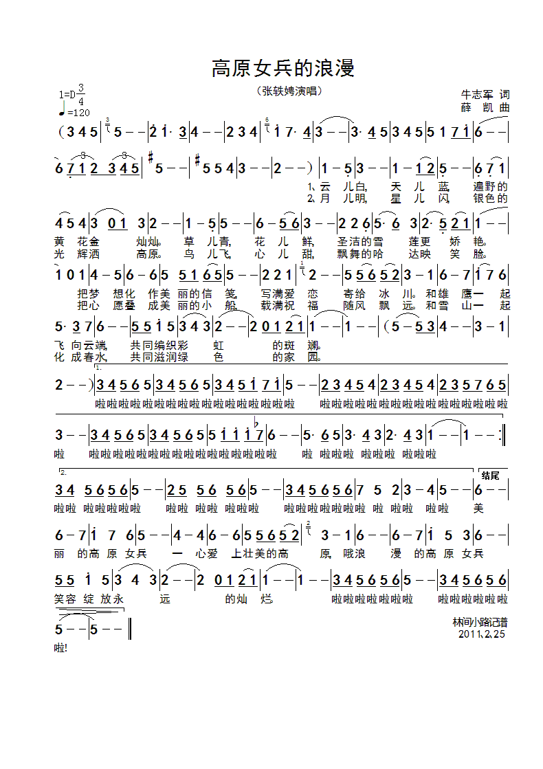 高原女兵的浪漫 简谱 曲谱