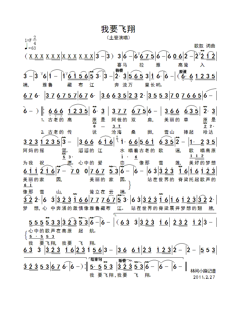我要飞翔 简谱 曲谱