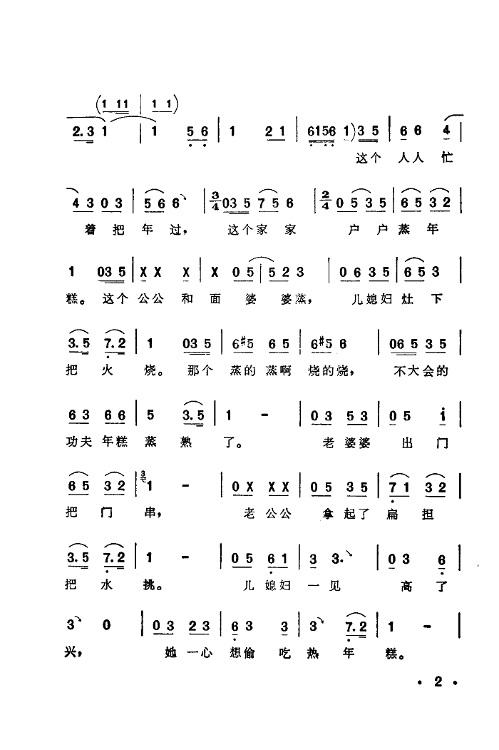 偷年糕 简谱 曲谱