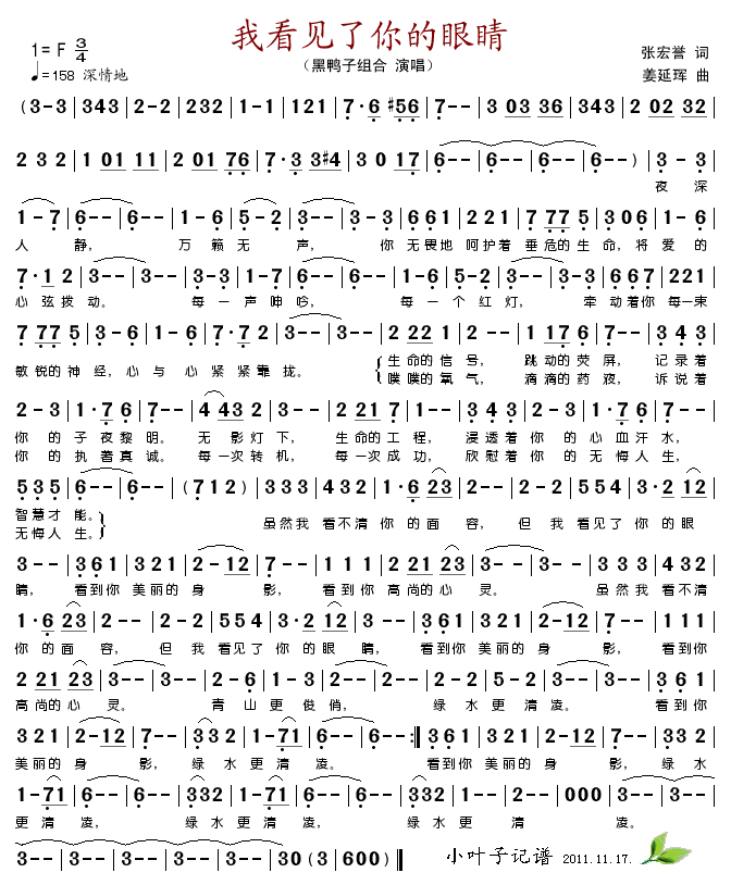 我看见了你的眼睛 简谱 曲谱