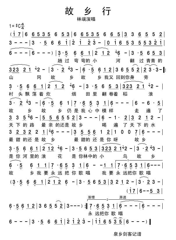 故乡行 简谱 曲谱