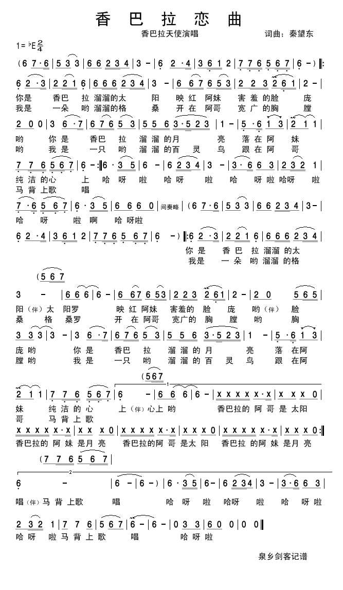香巴拉恋曲 简谱 曲谱