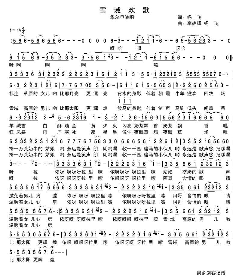 雪域欢歌 简谱 曲谱