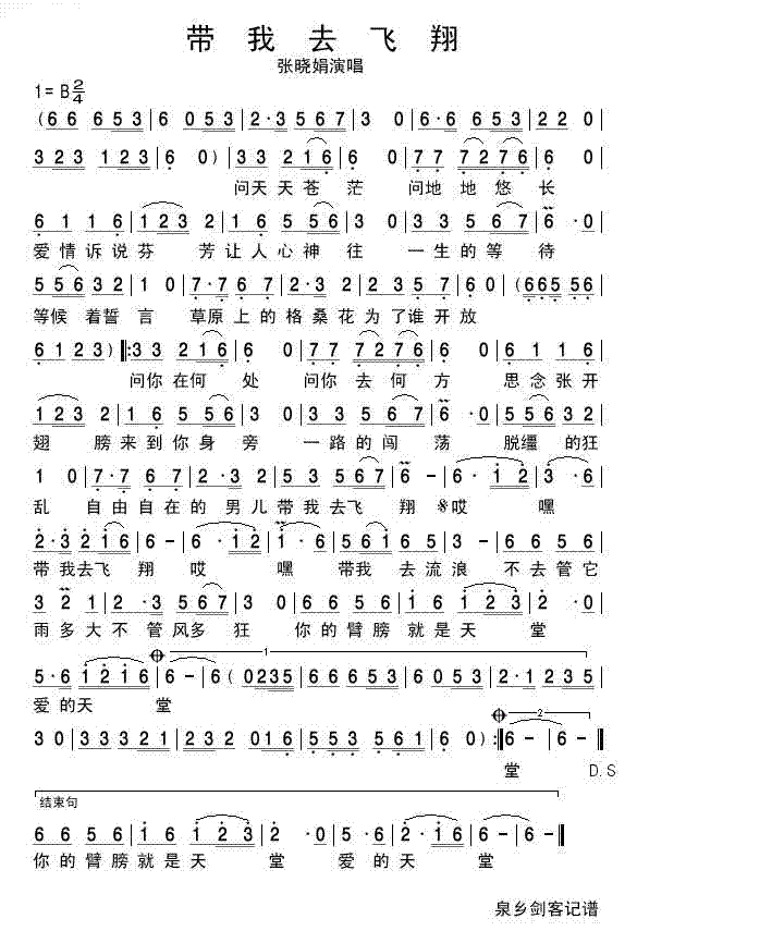 带我去飞翔 简谱 曲谱