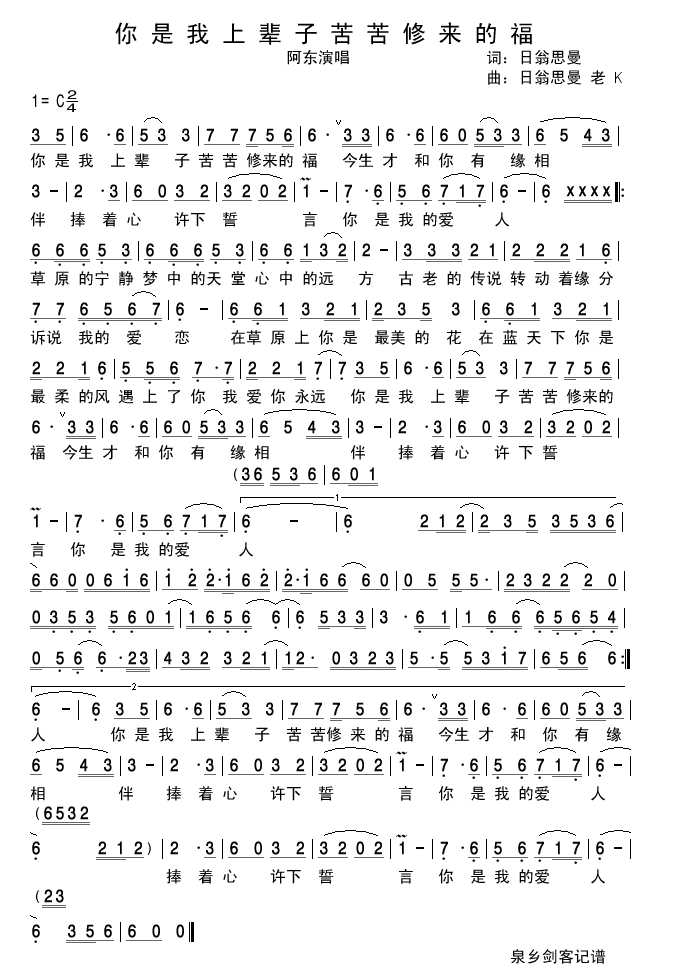你是我上辈子苦苦修来的福 简谱 曲谱