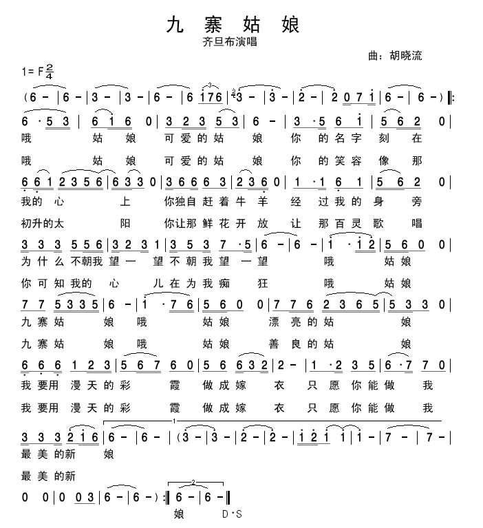 九寨姑娘 简谱 曲谱