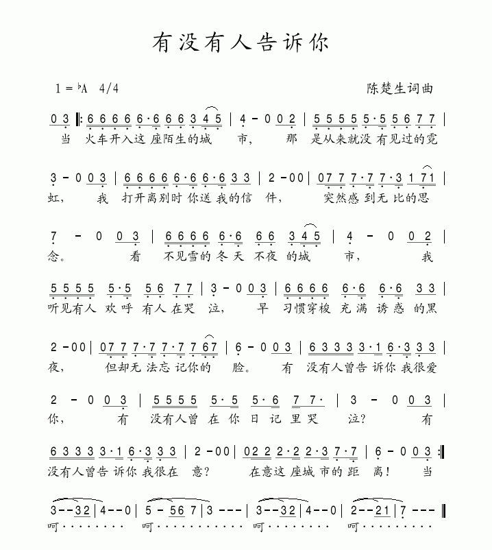 有没有人告诉你 简谱 曲谱