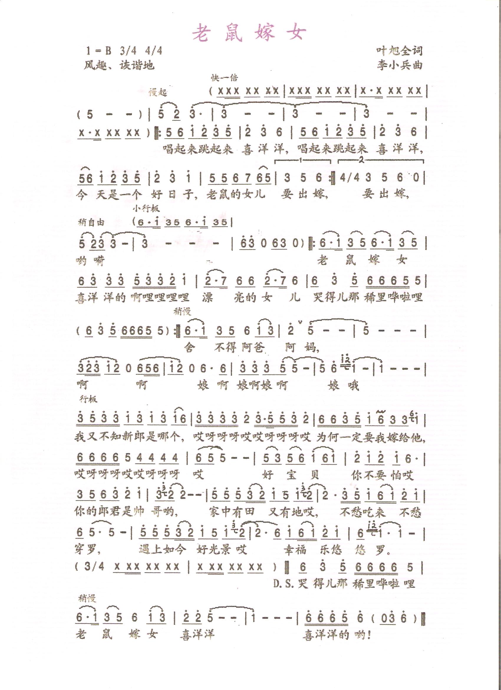 老鼠嫁女 简谱 曲谱