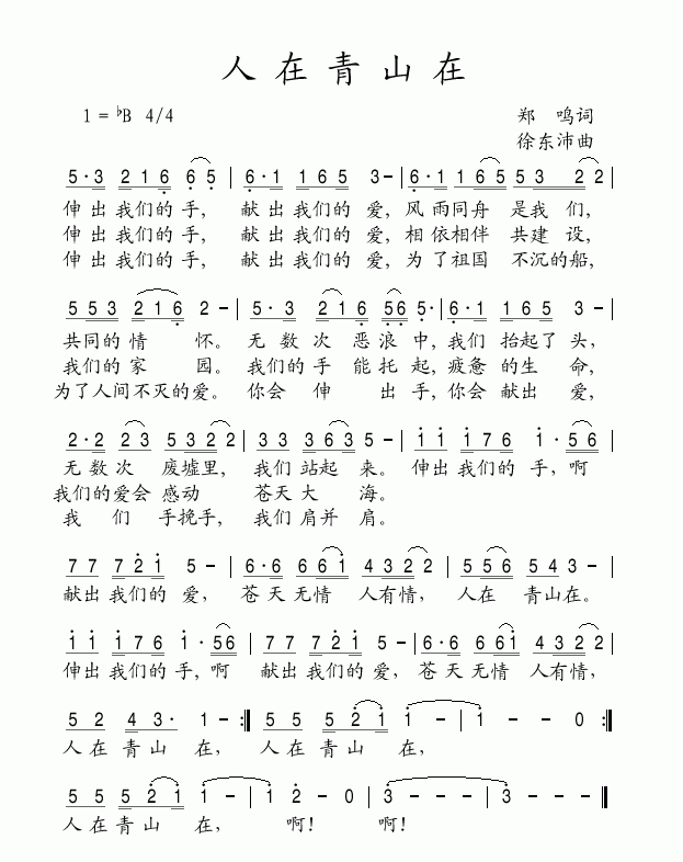 人在青山在 简谱 曲谱