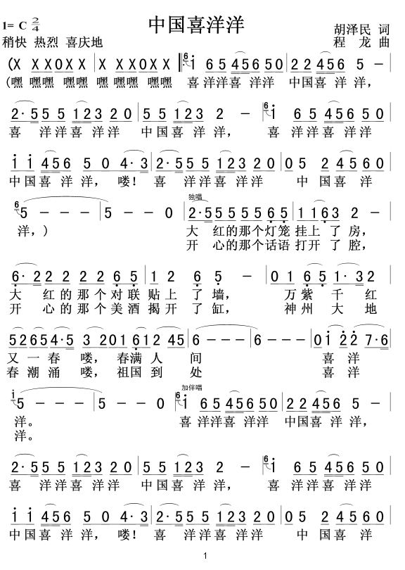 中国喜洋洋 简谱 曲谱