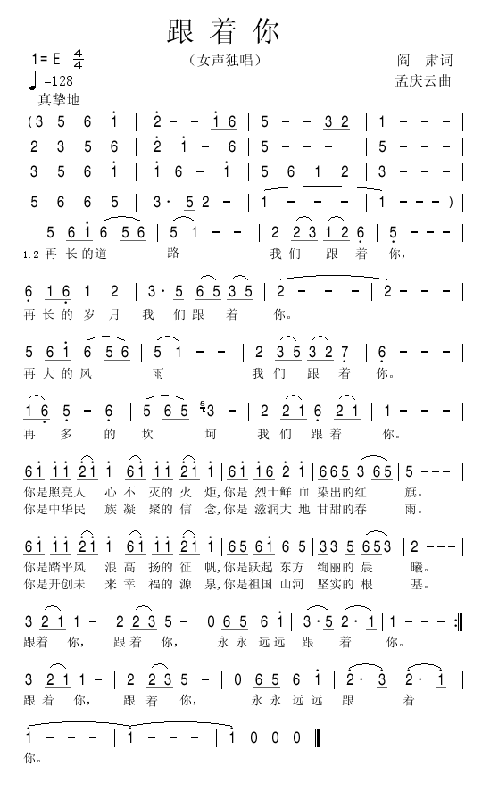 跟着你 简谱 曲谱