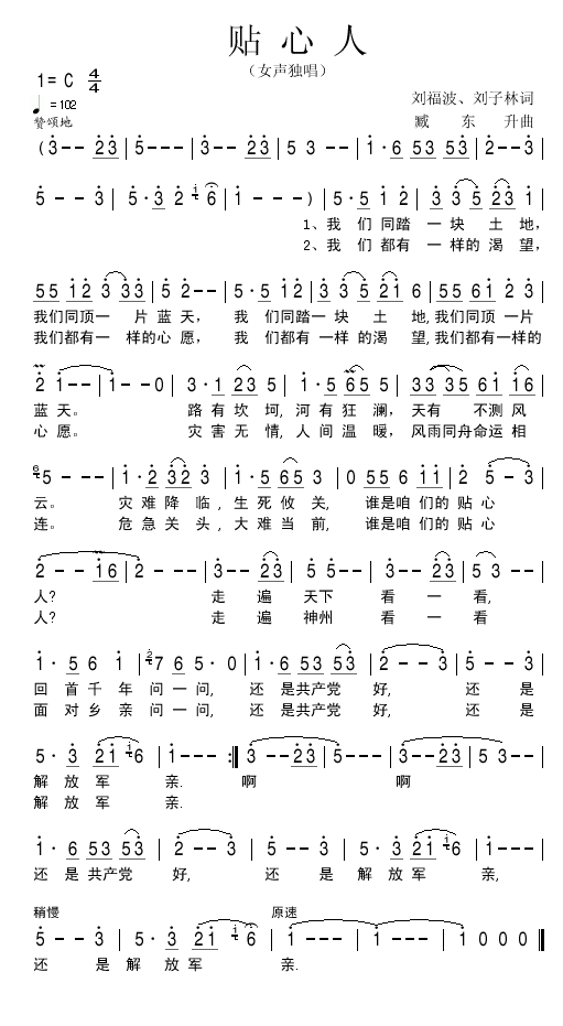 贴心人 简谱 曲谱