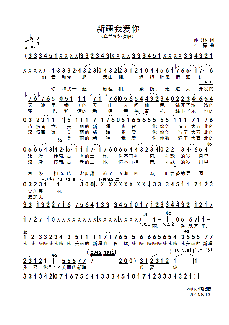 乌审草原的叙说 简谱 曲谱