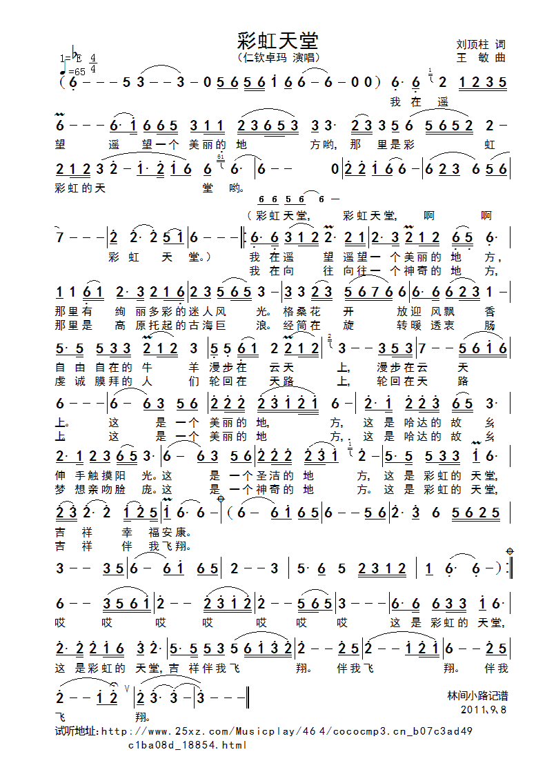 彩虹天堂 简谱 曲谱