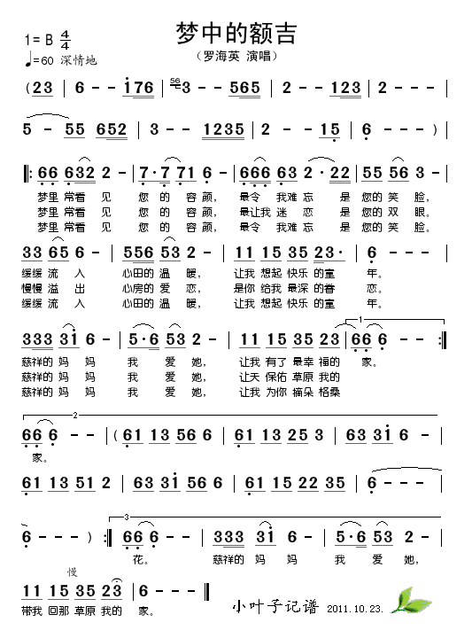 梦中的额吉 简谱 曲谱