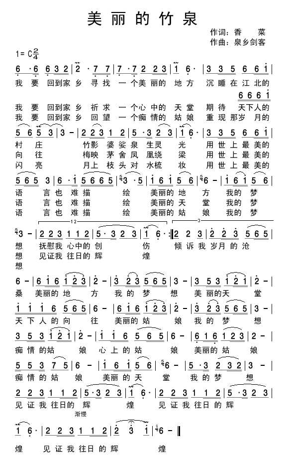 竹泉美 简谱 曲谱