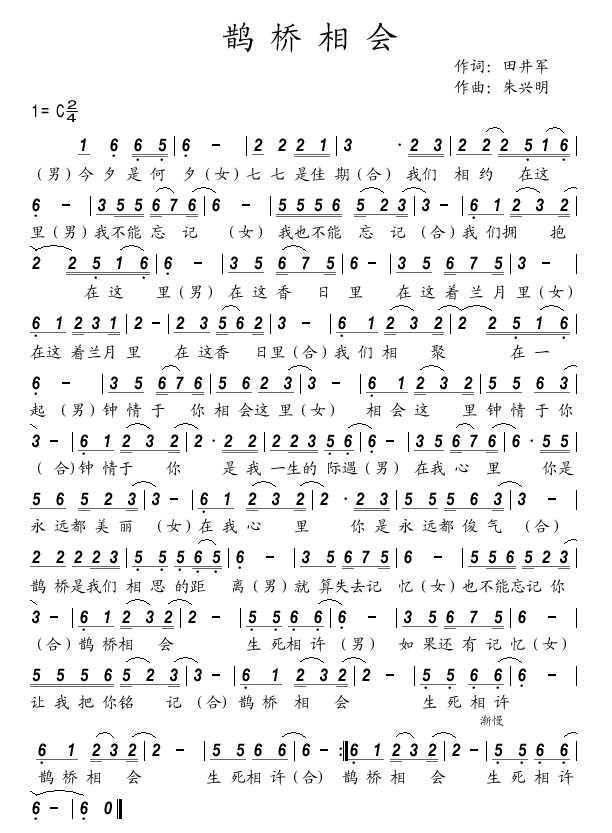 鹊桥相会 简谱 曲谱
