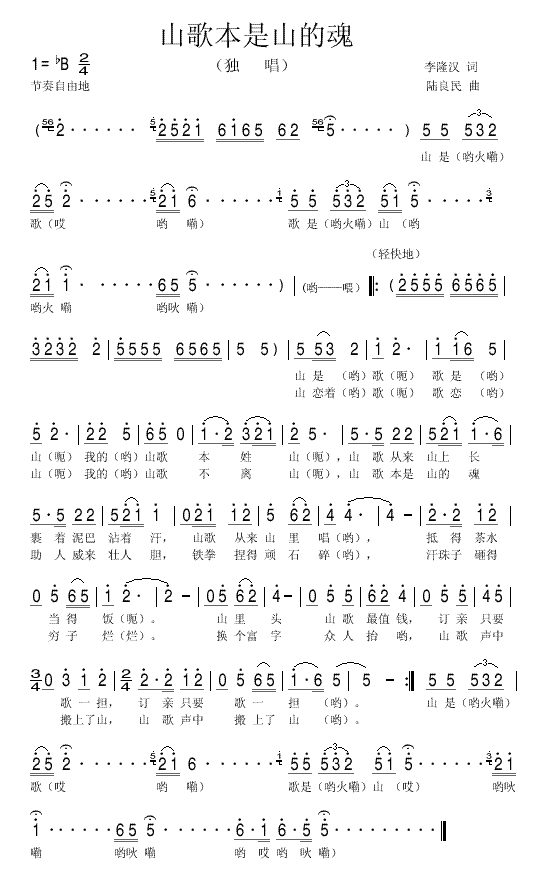 山歌本是山的魂 简谱 曲谱