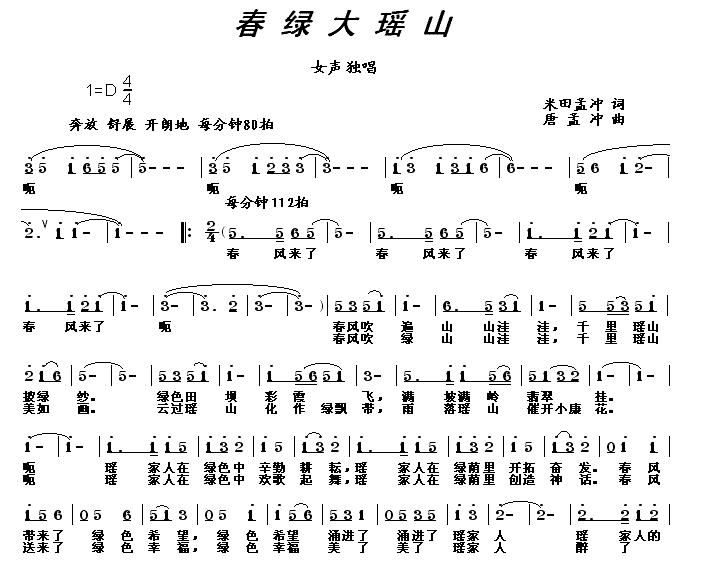 春绿大瑶山 简谱 曲谱