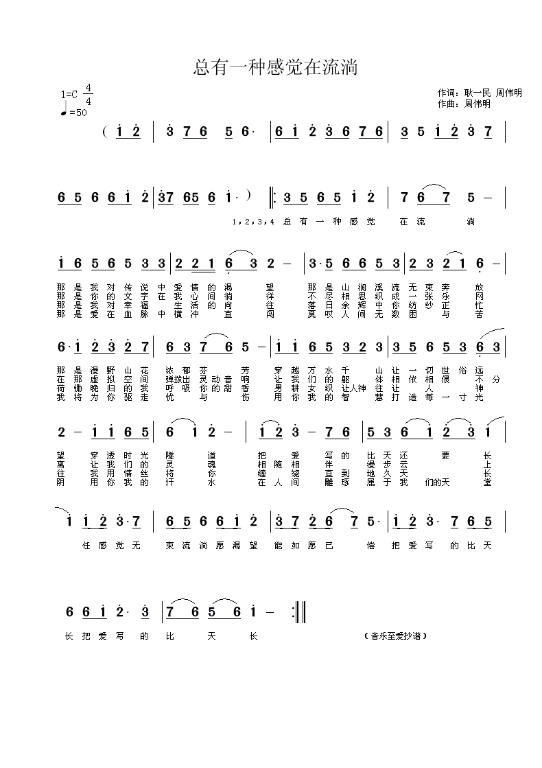 总有一种感觉类流淌 简谱 曲谱