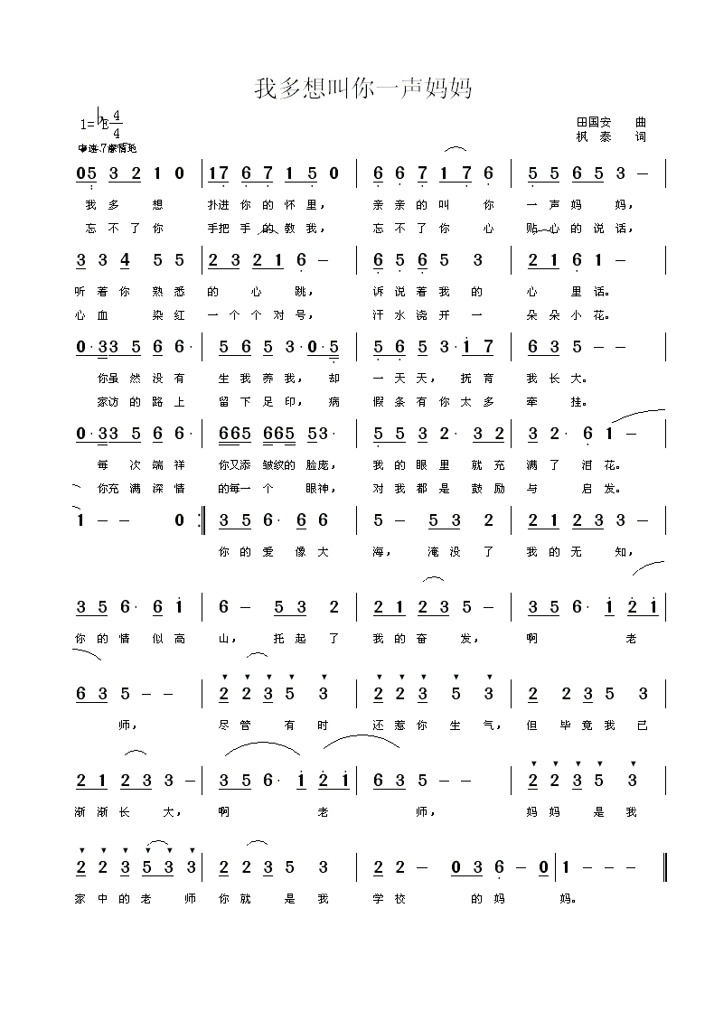 我多想叫你一声妈 简谱 曲谱
