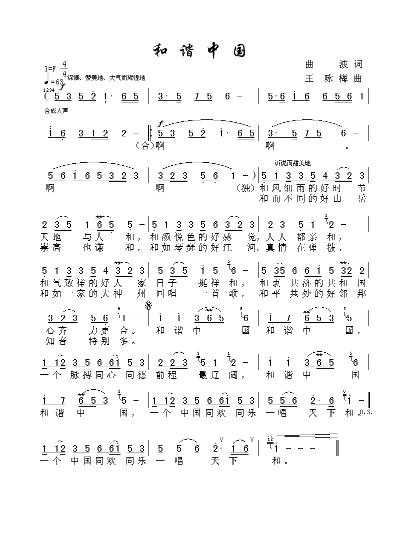 和谐中国 简谱 曲谱