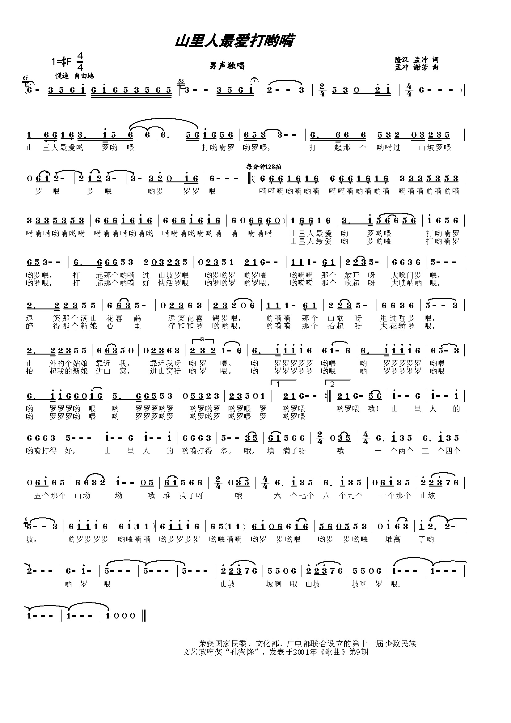 山里人最爱打哟嗬 简谱 曲谱