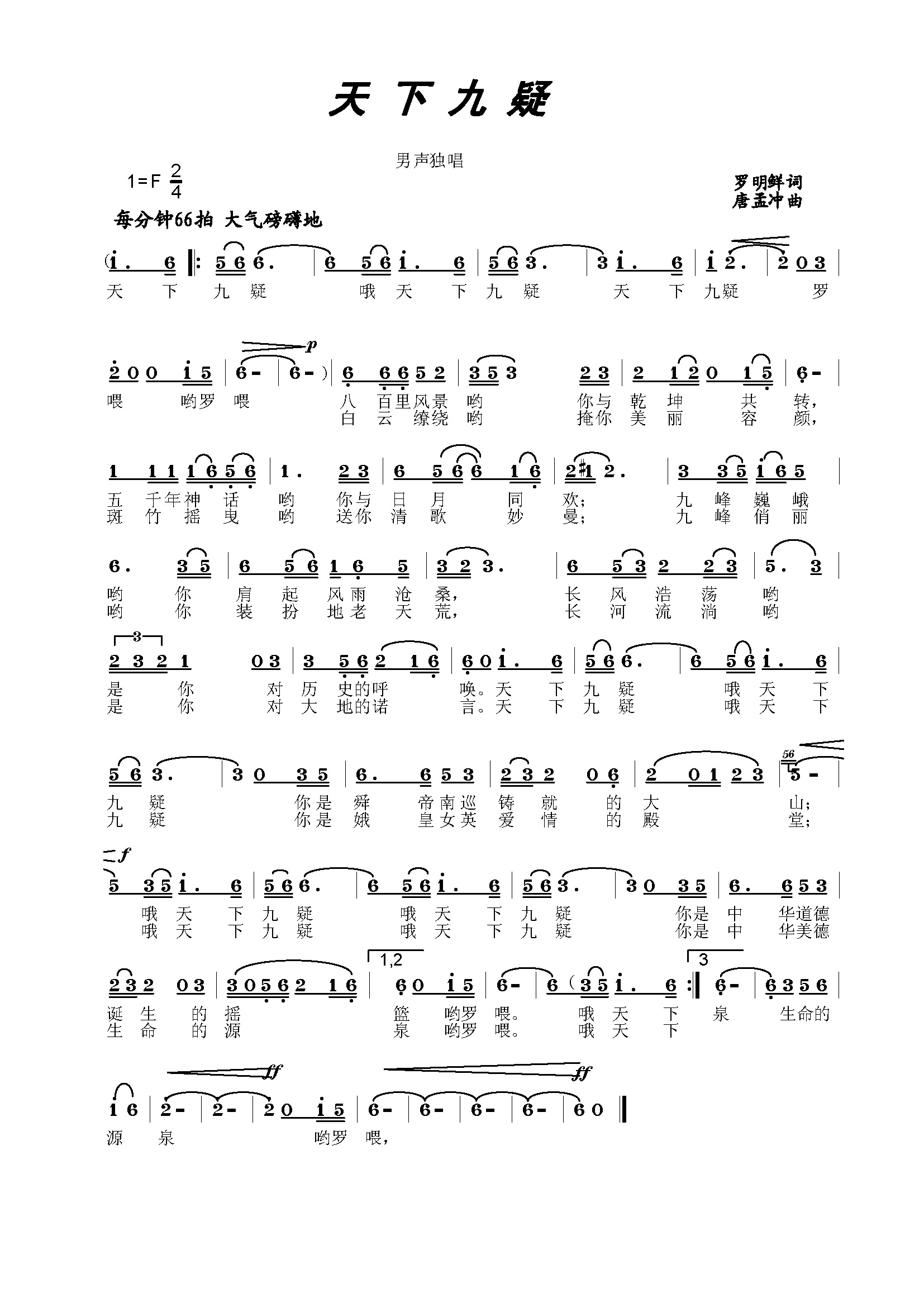 天下九疑 简谱 曲谱