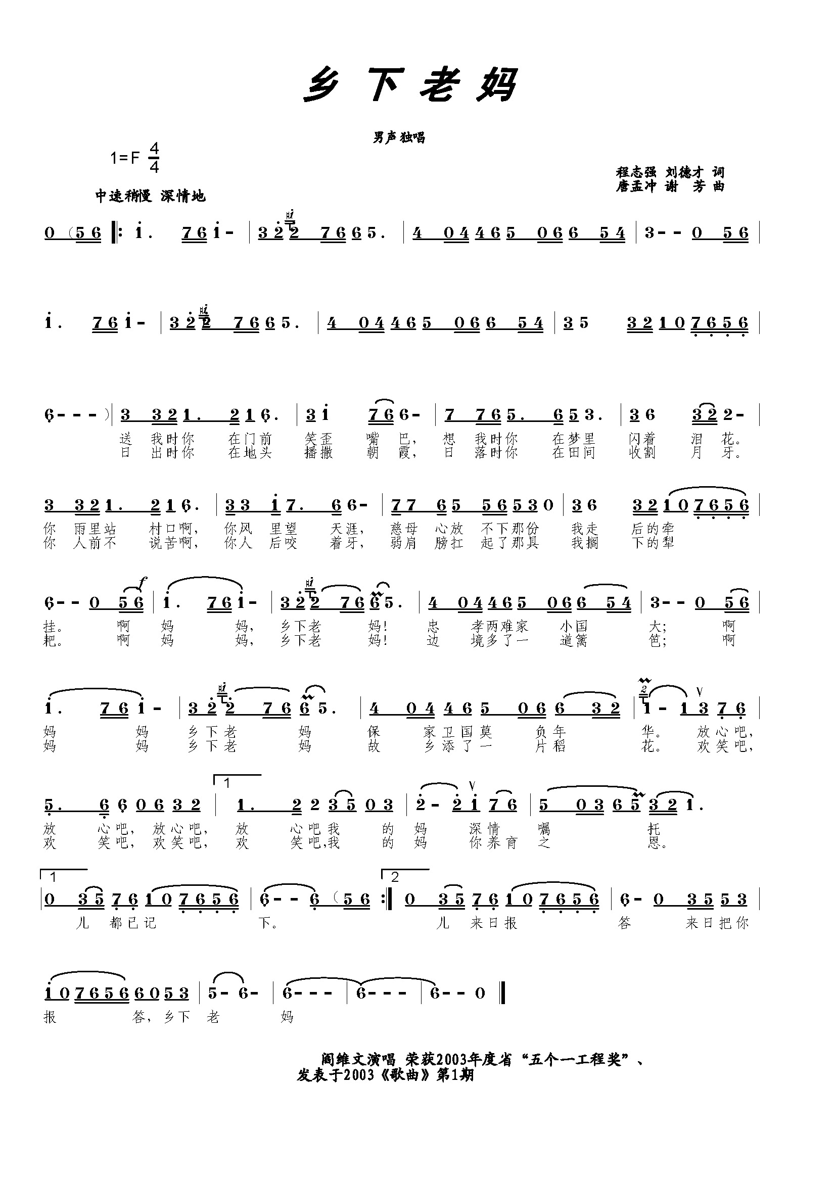 乡下老妈 简谱 曲谱