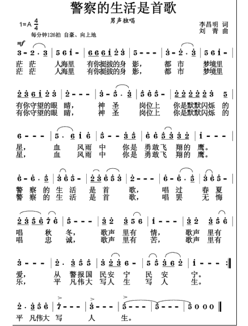 警察的生活是首歌 简谱 曲谱