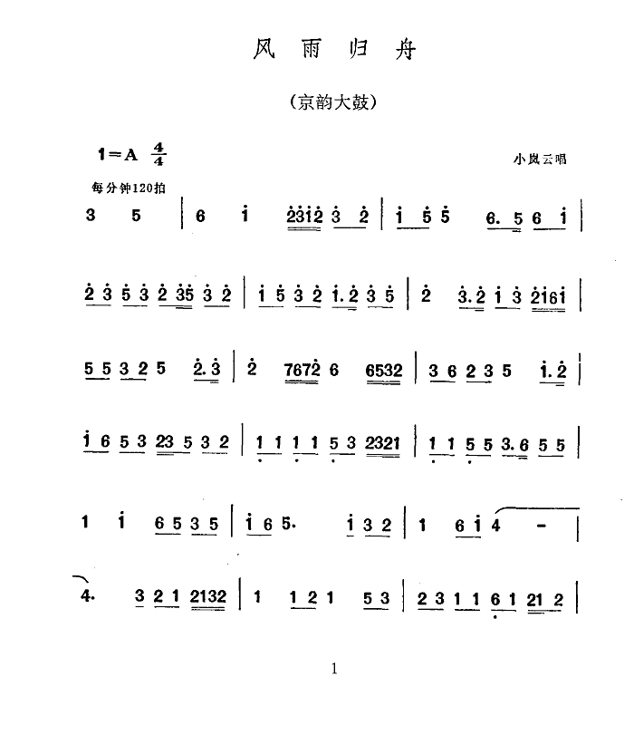 风雨归舟(小岚云) 简谱 曲谱