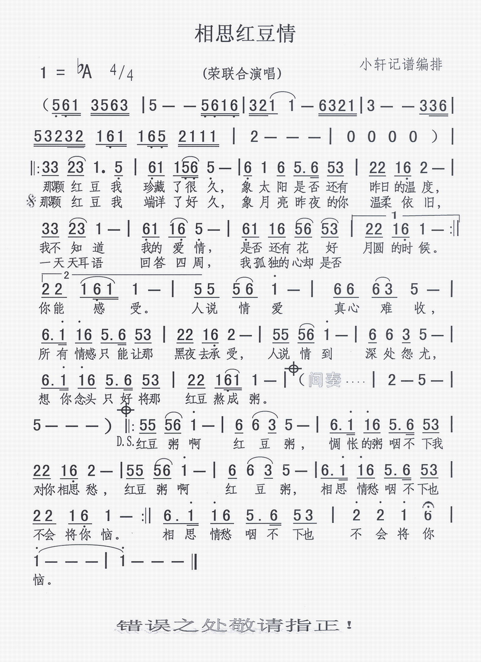 相思红豆情 简谱 曲谱