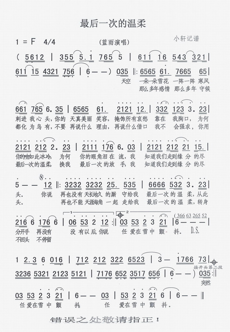 最后一次的温柔 简谱 曲谱