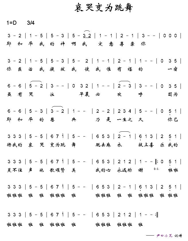 哀哭变为跳舞 简谱 曲谱