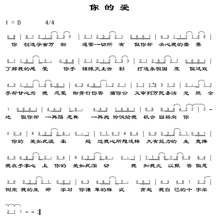 你的爱 简谱 曲谱