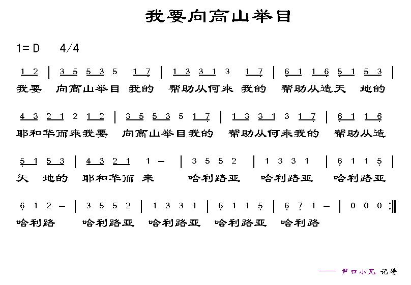 我要向高山举目 简谱 曲谱