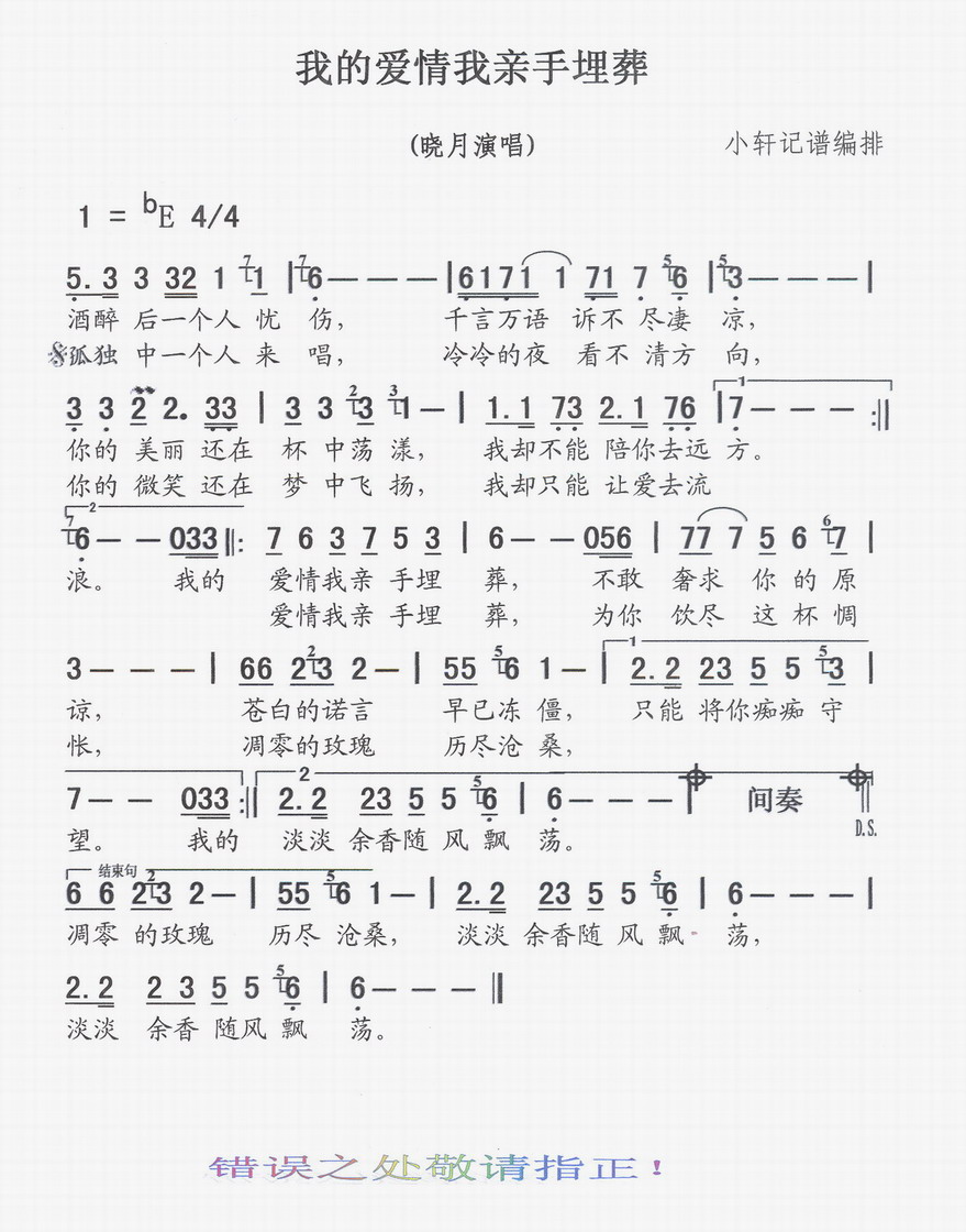 我的爱情我亲手埋葬 简谱 曲谱