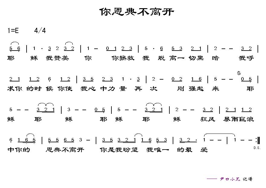 你恩典不离开 简谱 曲谱