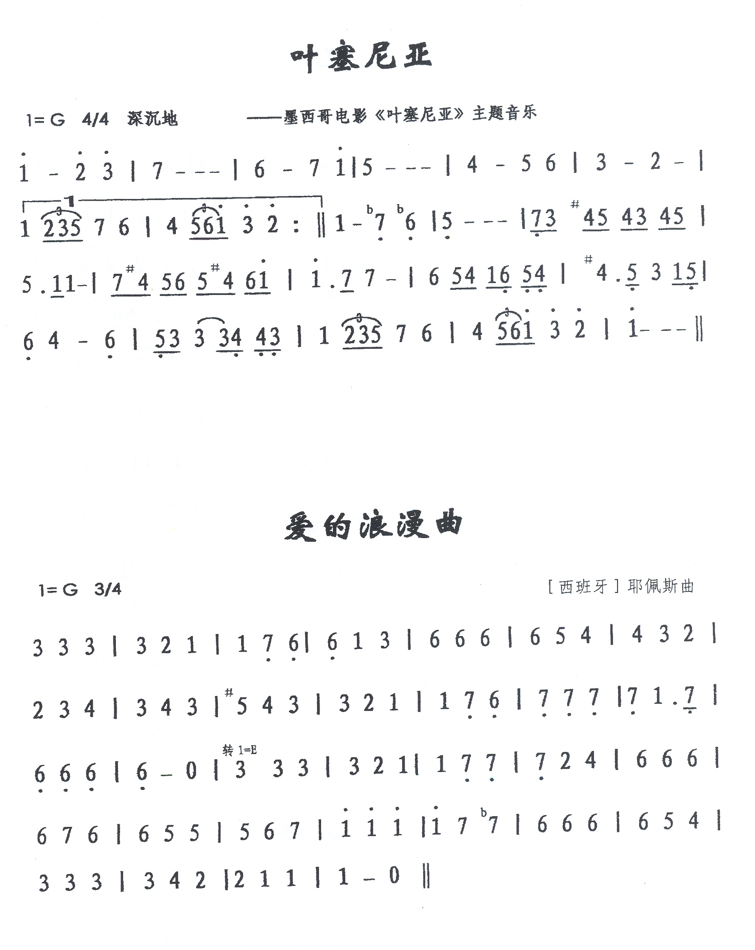 叶塞尼亚 简谱 曲谱